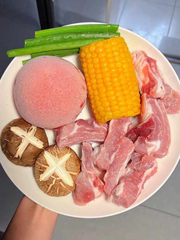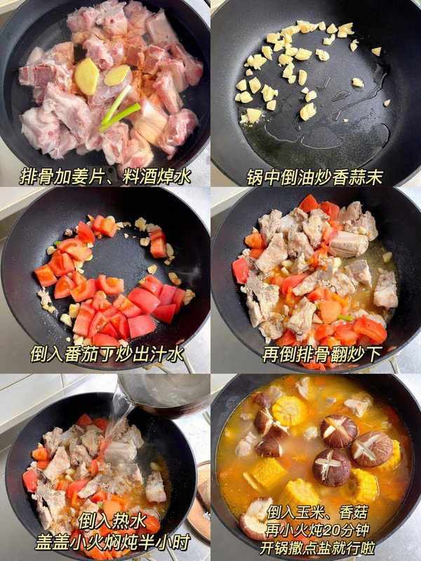 材料:排骨、玉米、番茄 、香菇、蒜。