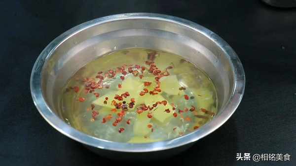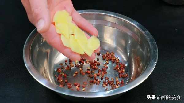 碗里面放花椒和姜片,再加入开水浸泡,把花椒和姜的味道泡出来,放凉备用;