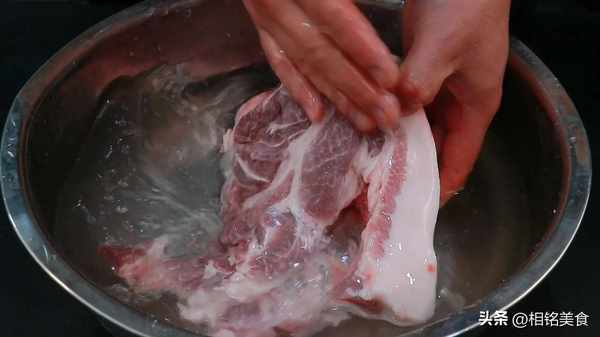 准备一块梅花肉或者后腿肉,比例二肥八瘦,口感最好;