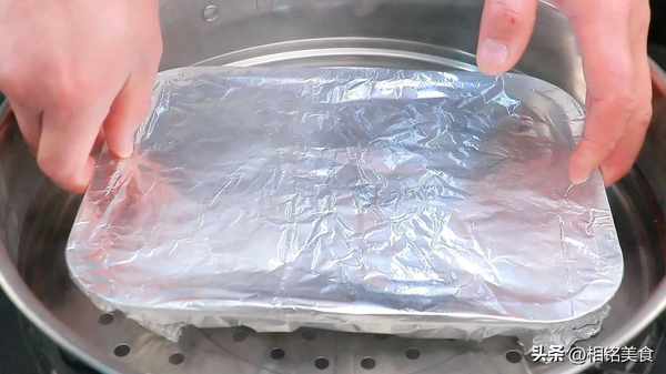 上面盖上锡纸或者保鲜膜密封起来,锅里水开以后,放蒸笼里面盖上锅盖;