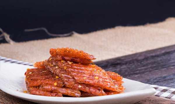 香辣条是以小麦粉或其他杂粮、豆类为原料,经挤压、加水、盐、糖煮熟后调味而成。这是一种非油炸的辛辣小吃。
