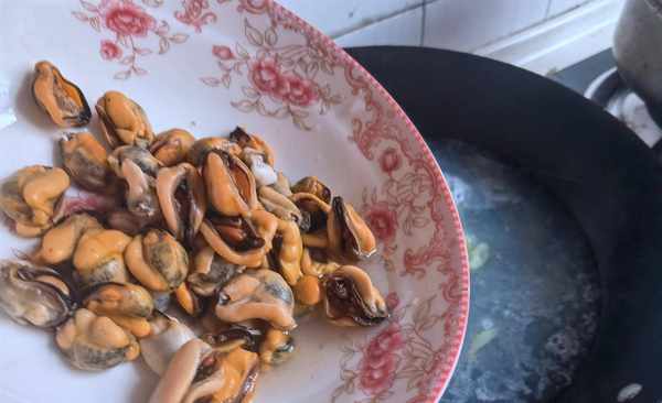 第一步:海虹是这个季节非常好的海鲜。海虹营养丰富,素有“海蛋”之称。买来海虹屋,洗净,放在烤架上用大火蒸5分钟,锅去壳,把里面的海虹肉取出来。