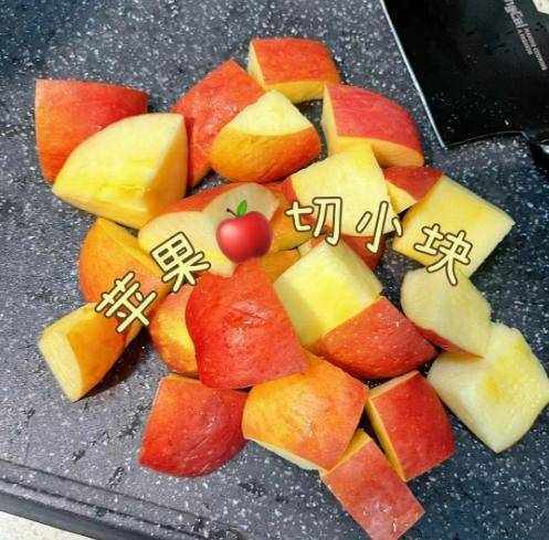 第一步:选购好苹果,无花果和猪展,先把苹果的外皮用盐浸渍,苹果从中间切开,挖掉苹果的果核,切成若干滚刀块。