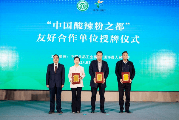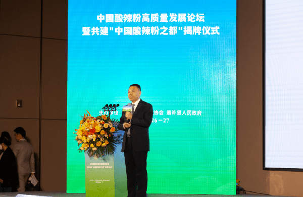 会上,中国食品工业协会副会长兼秘书长、高级工程师马勇与通许县委副书记、县长憨振强共同为“中国酸辣粉之都”揭牌,标志着中国食品工业协会与通许县共建“中国酸辣粉之都”正式启动。