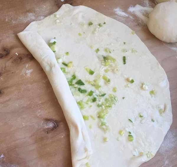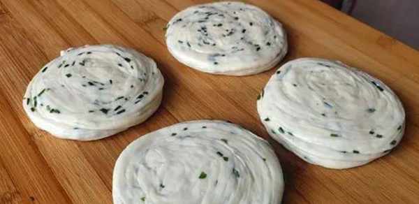 6、擀成螺旋状,用擀面杖擀成薄饼。