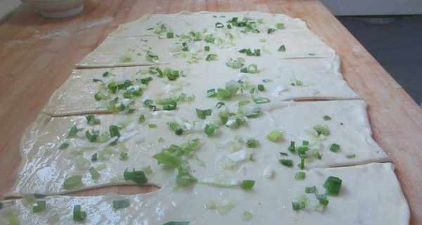 所需材料:1、面粉500克;2、适量的热水;3、熟猪油或植物油适量;4、葱花适量;5、香菜适量;6、黄瓜适量;