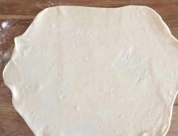 3、醒好的面团揉成长条,切成大小合适的面团,将每个面团揉成圆形,擀成薄饼。