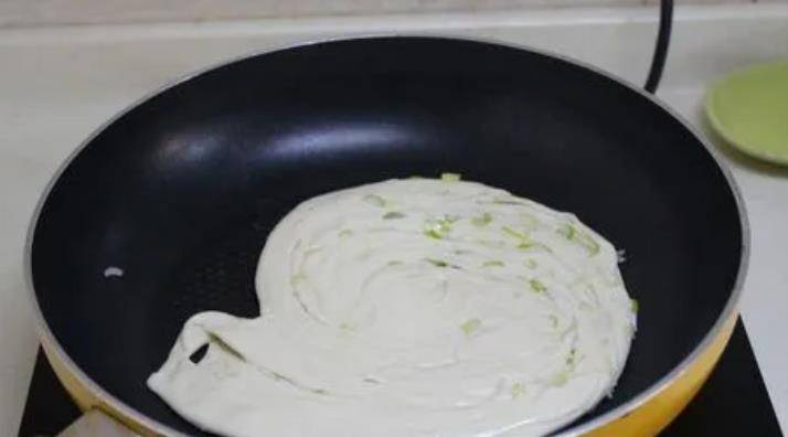 5、做煎饼的时候,可以用手或者筷子轻轻的压一下饼皮,这样饼皮受热均匀,这样烤出来的春饼会更香。