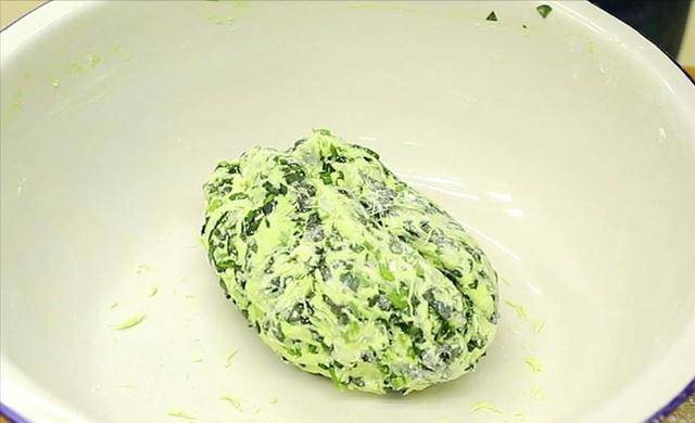 1.准备适量的菠菜,洗干净切成碎段放入盆中。加入适量的食盐、油,多次少量的倒入面粉,和成一个柔软的面团,全程不要加水,只用菠菜汁,保留饼的原滋原味。