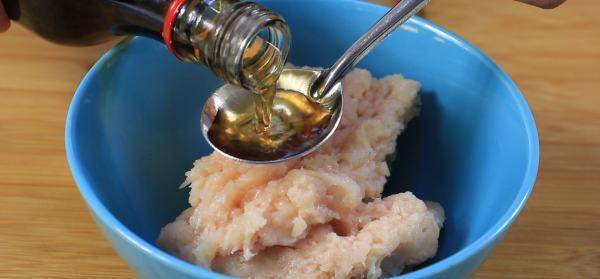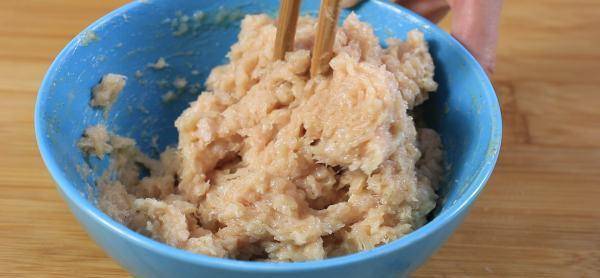 5、往一个方向持续搅拌,类似以前给大家分享的肉丸制作方法,搅拌3分钟左右,让肉泥上劲、比较粘稠的状态就可以停下来,这样做的目的是让炸好的上校鸡块口感有弹性;