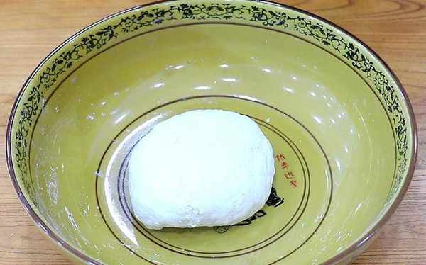 锅中加入500克普通面粉,上面撒上3克酵母,加入常温水,先揉成面粉片,揉到没有面粉了,然后压成面团,盖上锅盖发酵1小时。