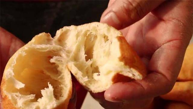 4.我们的油饼就做好了。这样做出来的油饼外酥内软。真的很好吃。喜欢的朋友可以在家试试。