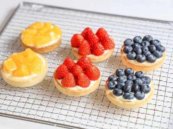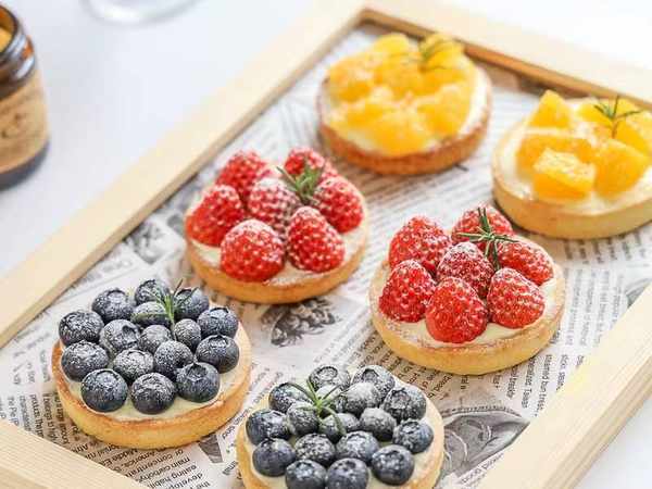 11、挤上奶油,摆上新鲜水果,撒上少许糖粉,水果挞就做好了