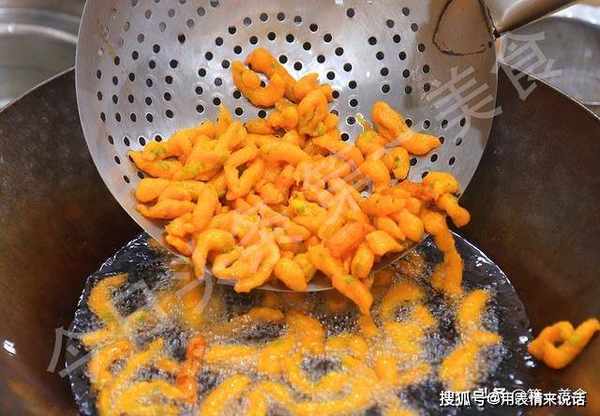 锅内烧油,油温四成热时在保鲜袋上剪一个小口,把南瓜泥挤入锅中,保持小火慢慢炸,南瓜条定型、全部飘起来以后就熟了,把它捞出来控一下油,稍微晾凉一些吃起来更加焦酥,一道金黄焦酥的油炸南瓜条就做好了。