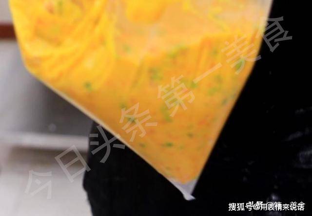把调好的南瓜面糊倒在保鲜袋中备用。