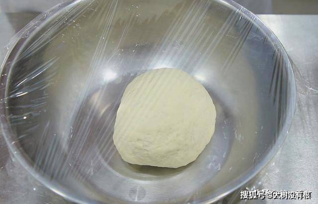 先搅成面絮,再揉成面团,反复揉搓面团,把面团揉光滑。用保鲜膜盖住,饧发15分钟左右。