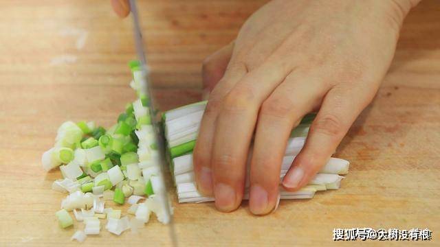 首先小葱几根,划成细丝,再切成碎粒,放在盆中备用。