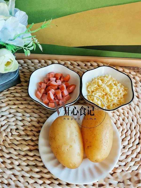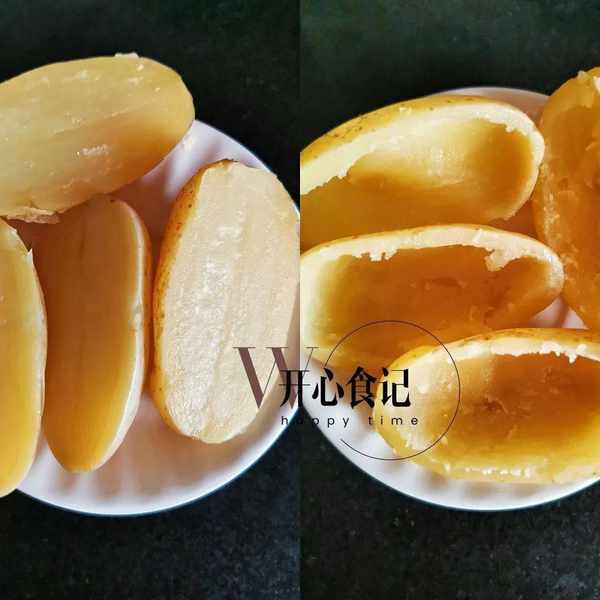 2. 土豆洗干净,蒸熟,挖出内瓤。