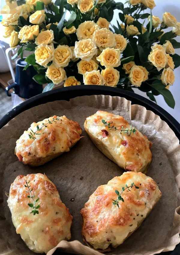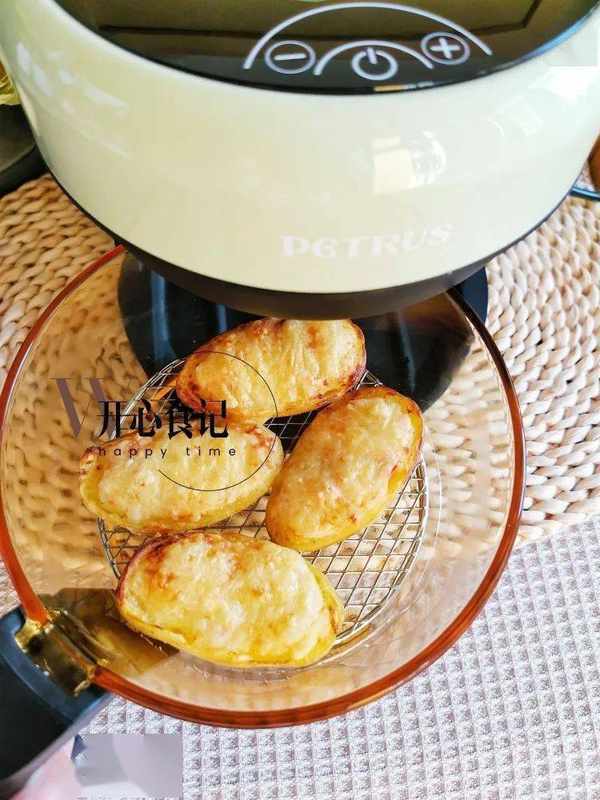 4. ️装回土豆壳中,表面撒马苏里拉芝士碎。