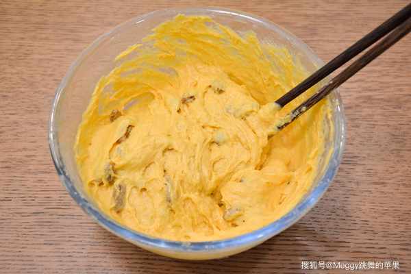 1. 备料:南瓜去皮去籽、蒸熟后打成泥;葡萄干用凉水泡软,沥干水;