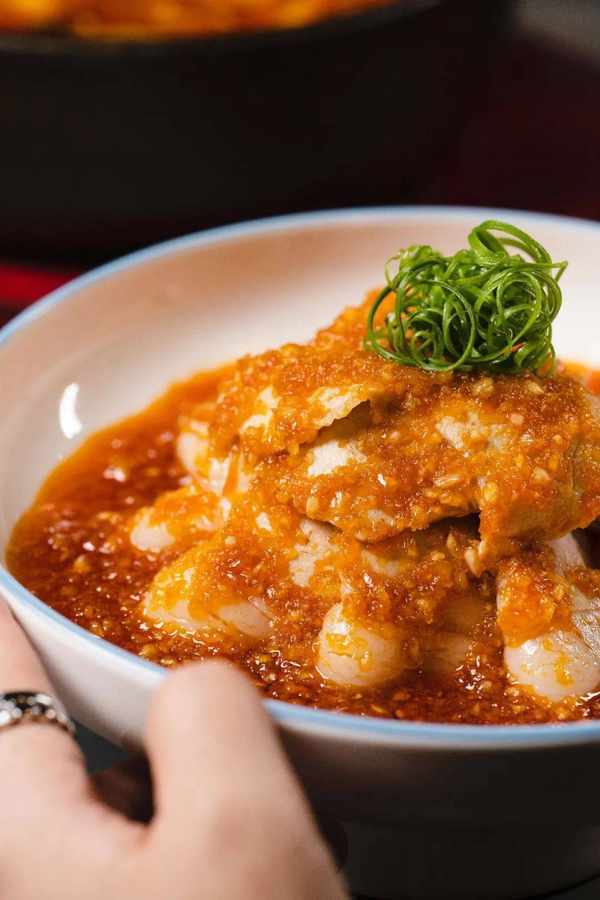 深圳作为各地美食神仙打架的地方,渝月的这道油泼沸腾鲈鱼,可谓是闯出了一番天地。川渝空运来的辣椒、花椒,在油中爆炒。再倒到肥美的鲈鱼上,5秒熟透,鲜香麻辣一齐迸发!