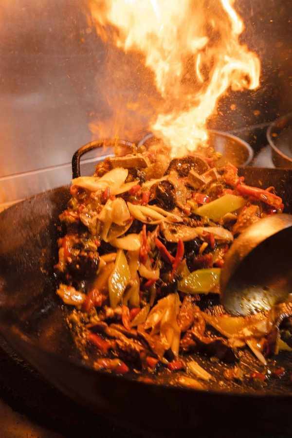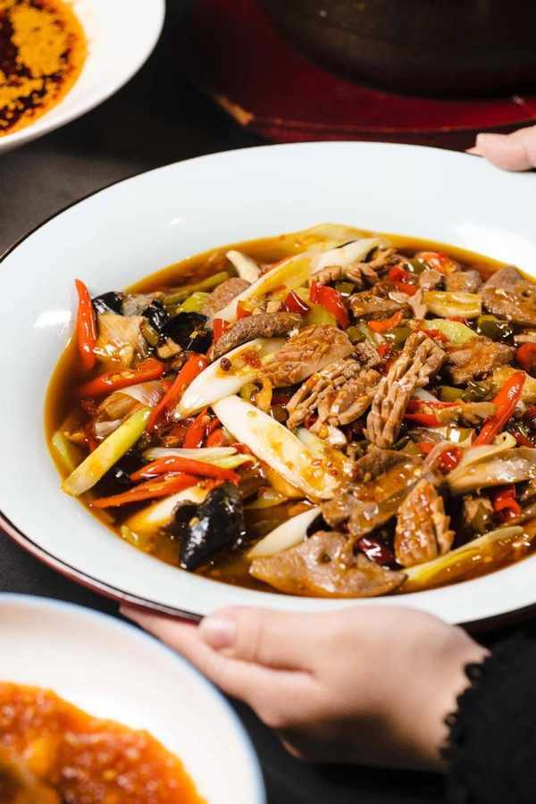 最是考验厨师功底的一道菜,没有过硬功夫还拿不下呢!新鲜的肝腰在旺火上一顿翻炒,只能18秒,葱香、辛香就组团扑鼻而来,肝腰也呈现出最鲜嫩的状态,馋得人心痒痒。