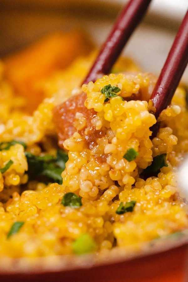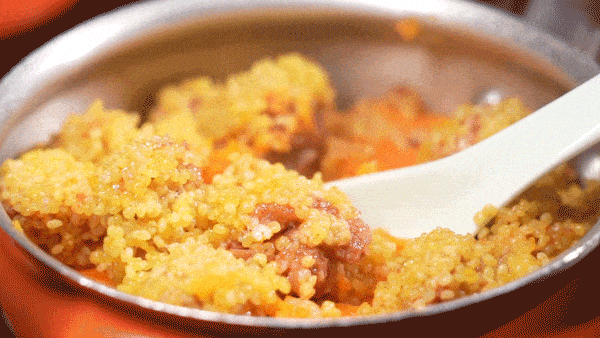 熟软的黄米裹着酱香排骨,吃起来咸鲜耙糯。最底下还有闷得烂熟的番薯块,自然甜香,多吃不腻!一锅端上来,秒抢光!