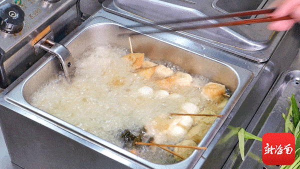 选好自己喜欢的串串,胖婆婆就准备热油下锅,开始炸串。随着油锅变热,串串们也一个个“准备就绪”,一盘荤素俱全的串串就出锅了!