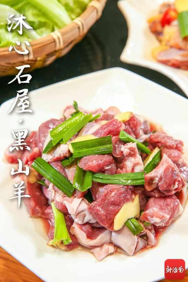 主打的黑山羊肉,肥瘦适中、皮白肉嫩,是难寻的上好食材。只需煮上10分钟,就可以趁热开吃。不蘸任何调味料就足够嫩滑,连一丝腥膻味都没有,一口下去有够满足。