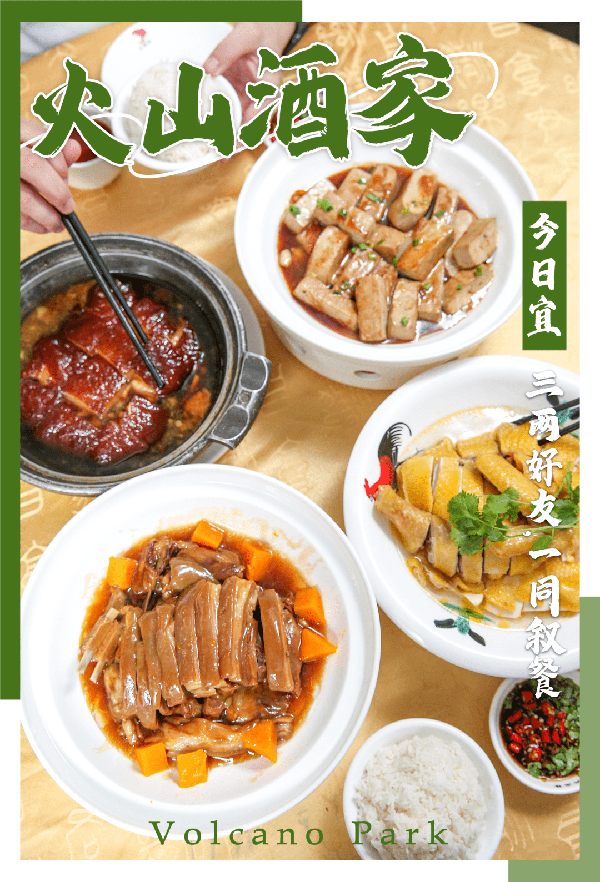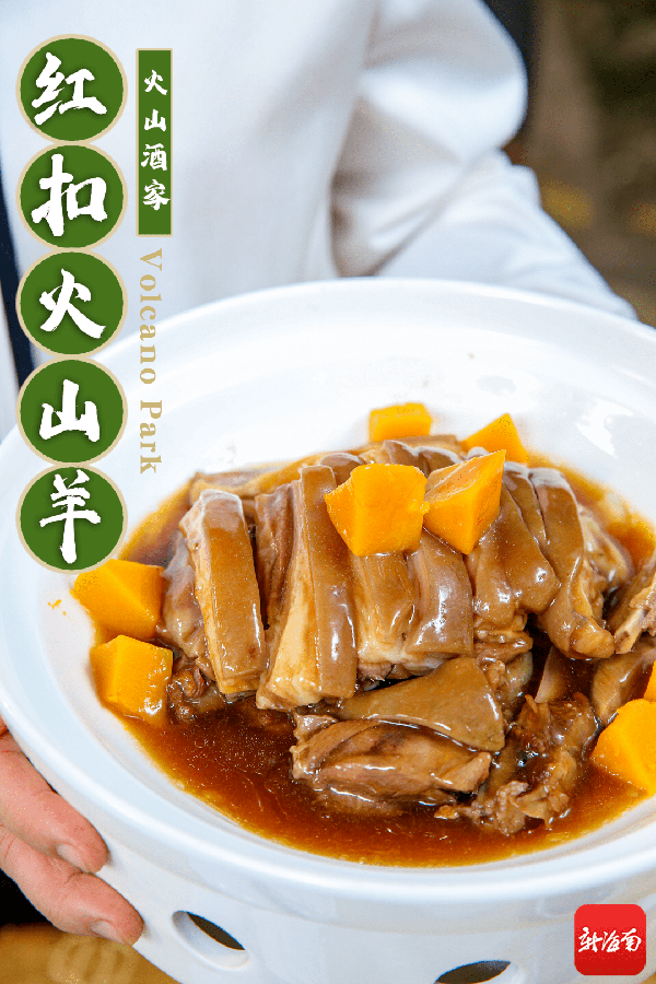 就位于火山口山脚下,主打海南各地的经典美食,样样出色,甚至有食客为了这里的白斩荔枝鸡、酒乡封肉、红扣火山羊,不远驱车30km,也只是为了吃上这桌美味。