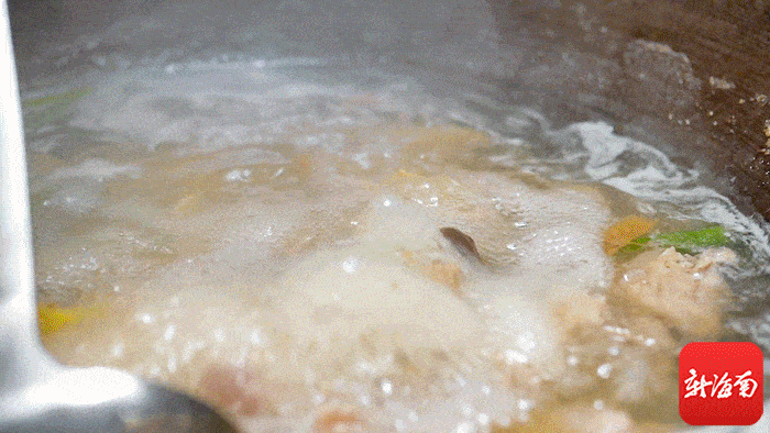 只加了清水和一些辅料,没有调味,这就是海南吃货们爱的锅底。等到锅底沸腾,就可以把肉统统下锅。只用好食材就能煮出鲜汤,是属于海南吃货的骄傲。