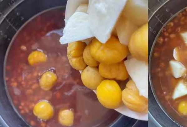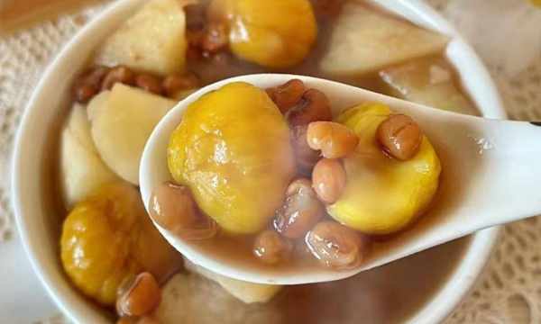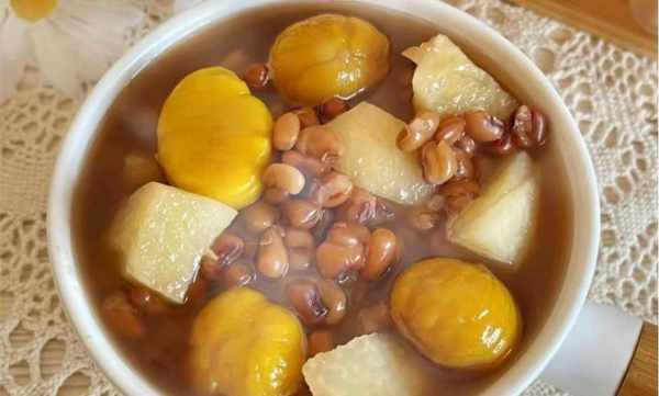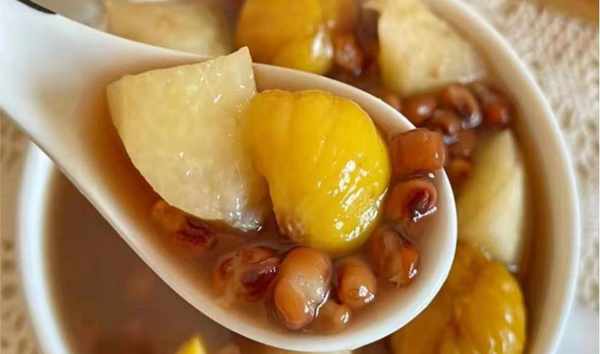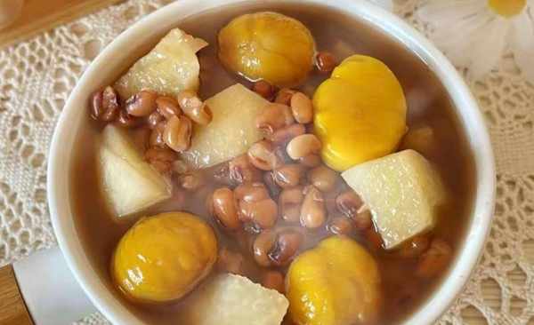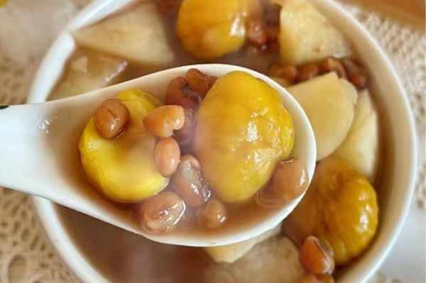 红豆板栗红薯甜汤是一款非常甘甜的甜汤,几种食材炖一锅,汤汁非常甜美,红豆是补气血的食材,搭配红薯炖一锅,能够健脾胃,滋补气血的目的,让自己精神百倍,早食早受益。