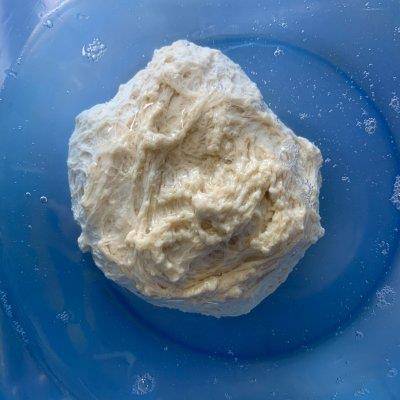 1、和成软硬适中的面团,醒发半个小时左右,加入适量水开始洗面