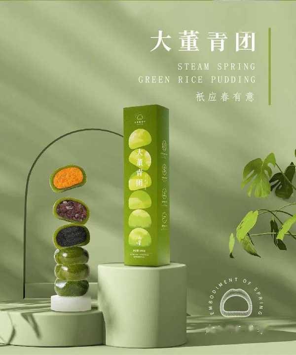 大董青团的包装一见倾心,也一见清新,软糯糯的青团如湖面倒影着春天的水彩画,灵动、萌趣地堆着!