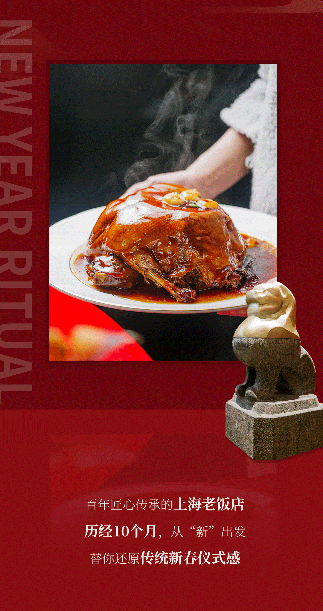 趁着新年之际,国家非物质文化遗产本帮菜烹饪技艺第五代传人:上海老饭店总厨罗玉麟师傅推出“一帅九将”系列本帮菜肴。