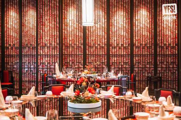 3楼的包房分为红、黄两个主题色调,红色张扬优雅、黄色则低调精致,每个角落都充斥着中国风美学设计。
