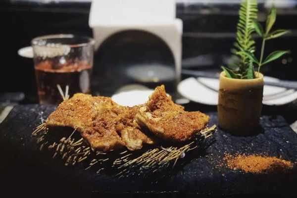 秘制烧鸟一端上桌,直接把眼睛看直了。它的外皮裹满了酱,入口细滑且没有腥味,香到连签签都嗦一口!