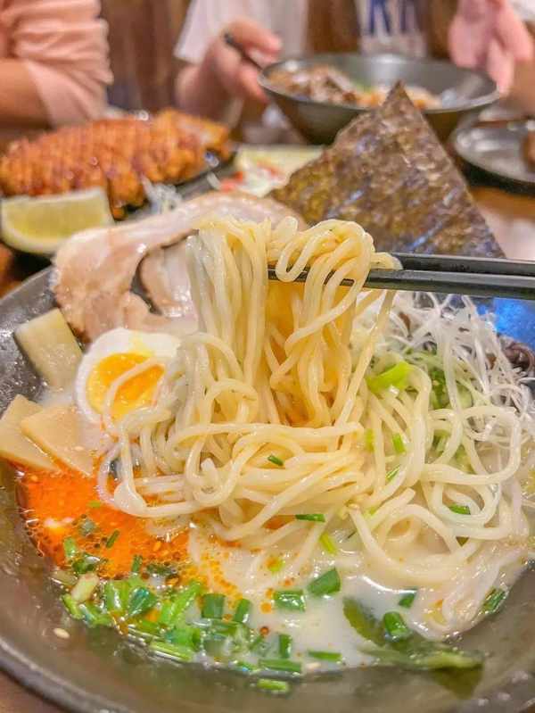 特色豚骨拉面必点,端上桌就被这个颜值给打动了,汤底浓郁,有点微甜。