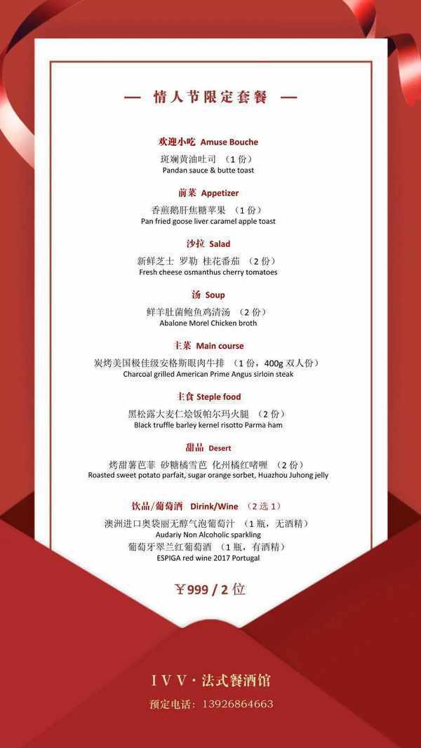 IVV·法式餐酒馆 -- 情人节双人套餐