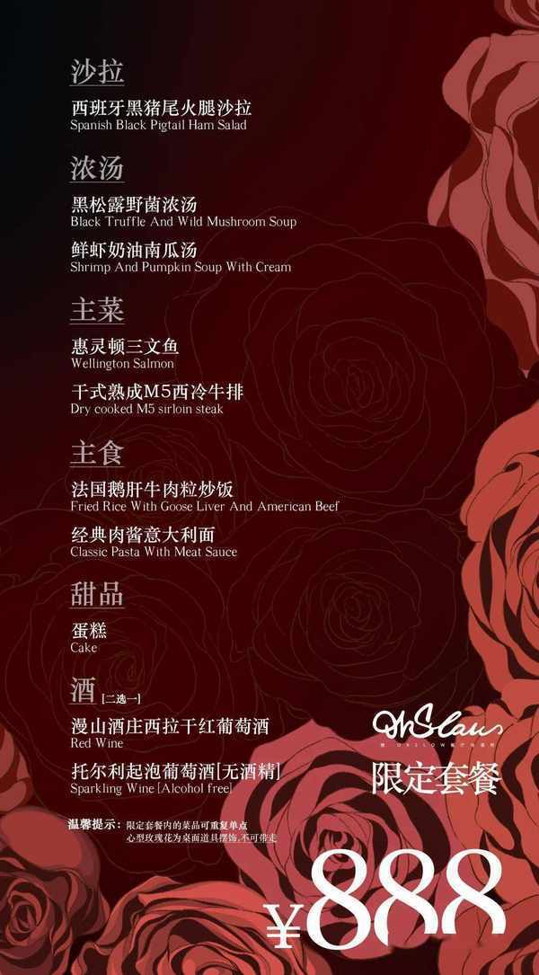 马上就到情人节了,带上爱人来体验一次微醺的浪漫夜晚,品尝各种美味佳肴。每一道菜之间口味的搭配、份量以及上菜顺序,都是精心安排的,用心制作,摆盘精致。