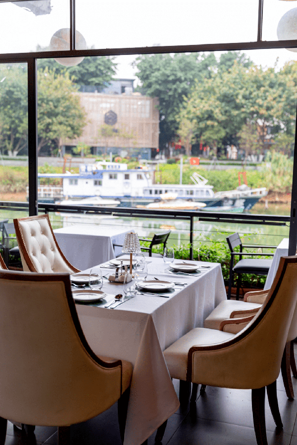 傍晚时分坐落江边,吹着懒洋洋的晚风,欣赏夜景小酌一杯,舒适又惬意。二楼露台还可以欣赏日落与晚霞,浪漫氛围感十足,太适合来这里约会了。