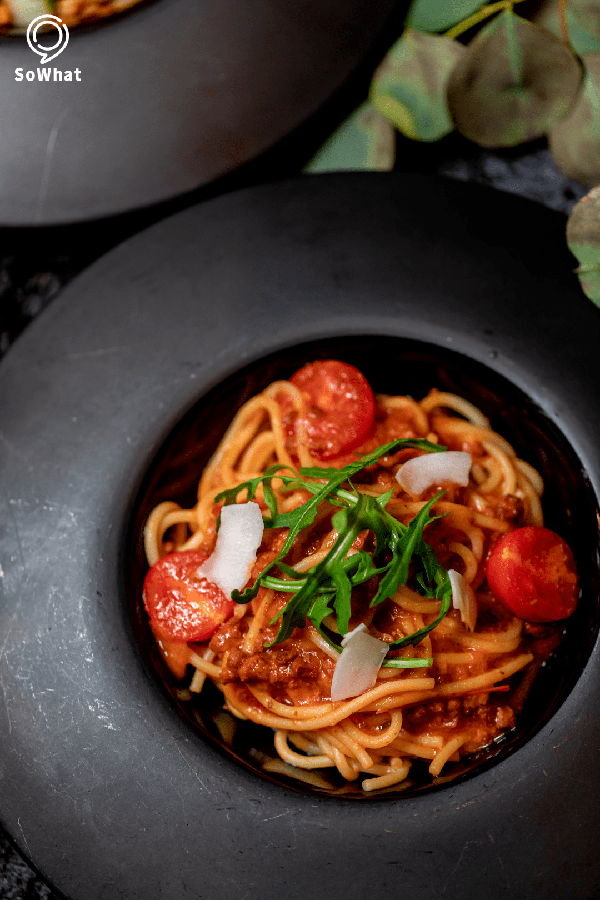 鹅肝牛肉炒饭,真材实料的硬核盖饭,最上面的鹅肝,表面焦黄浓香,内部温润软滑,丝毫不觉油腻;意式肉酱意粉,色香味俱全,每一根意粉裹满酱香,酸甜开胃轻松光盘~