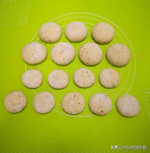 分成25克左右的小面,搓圆压扁(最下面两排小生胚)。