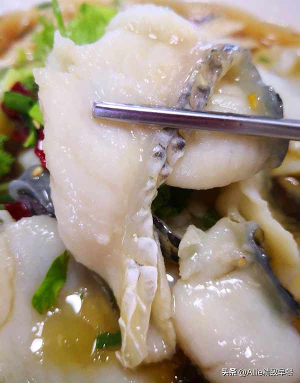 微辣微酸的味道很开胃,鱼肉鲜嫩可口,没有一点腥味。