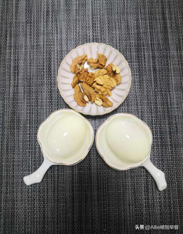 每天一个煮鸡蛋可以补充多种微量元素;两个核桃,作为营养补充剂。