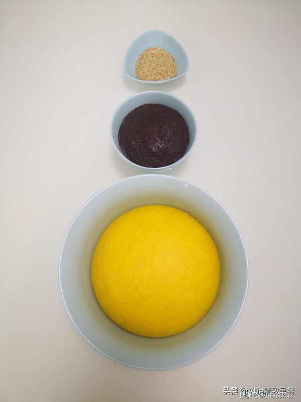 南瓜、荞麦粉、高筋粉、红豆、白芝麻、鸡蛋、酵母、玉米油。【实践】我用的是大颗的红豆,出沙量大,口感粘稠。睡前一晚将红豆洗净,直接倒入电饭锅。加入足够的水没过红豆。选择粥/汤功能键盘。煮好后自动跳动保温。当你早上醒来时,它会变软变烂,这样既简单又省时。也可以将红豆用冷水浸泡一夜,第二天早上再入锅煮。