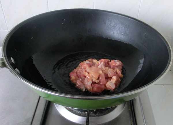 做法:1、鸡腿肉切丁,用盐、料酒腌制20分钟