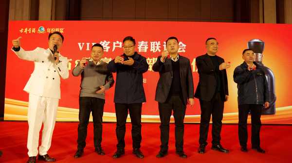 晚宴在一片祥和中开启,新的奋斗号角已经吹响,古井贡人沿着新的目标“兔”飞猛进!古楼湖北大区总经理许永祥、古楼襄阳分公司总经理韩明稳、古井贡襄阳办事处总经理刘顺彦、老友记总经理陈登及渠道部经理郑永超上台敬酒,祝福大家在新的一年再创佳绩,续写辉煌!