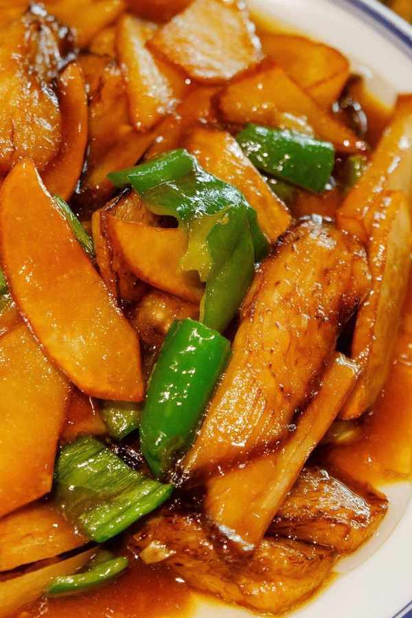 茄子软而不烂,土豆绵密粉糯、青椒鲜嫩香甜。虽然有点偏重口油腻,但是真的下饭!