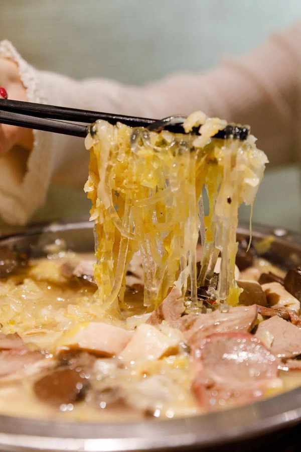 吃着吃着惊喜发现底下居然还藏有粉条!吸满了汤汁的粉条,可以说是精华所在,吸溜一口,烟韧Q弹,让人忍不住想要再嗦几口。